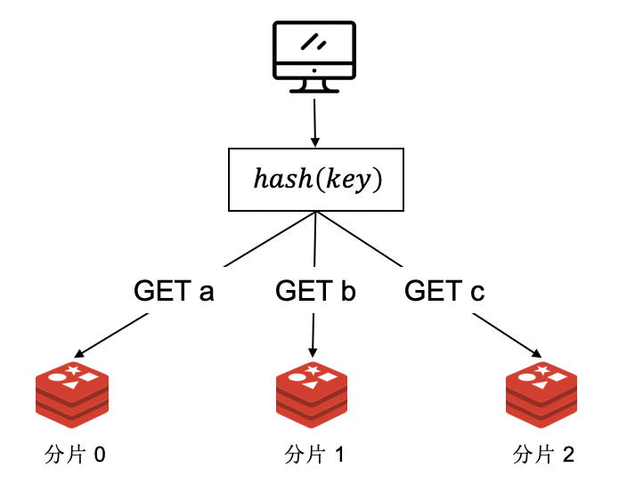 客户端分片是指把由 key 得到对应 Redis 分片的操作放在客户端,客户端只需要记录所有分片的地址,并且所有客户端都使用同样的哈希算法,那就可以通过 key 得到对应的分片。